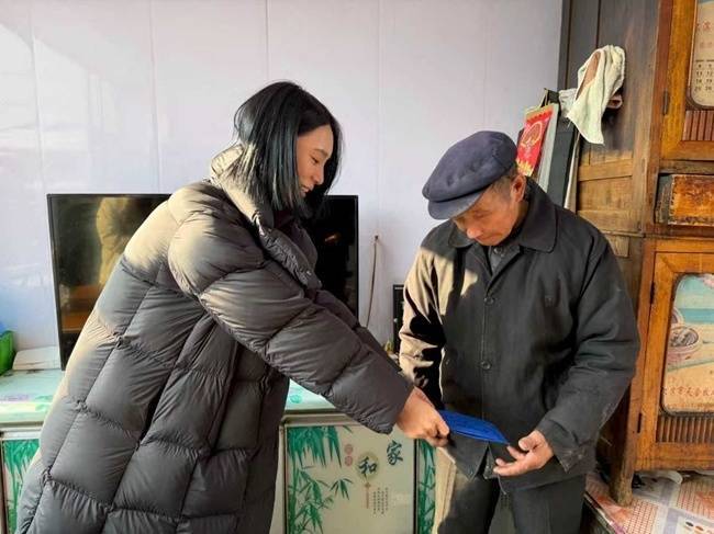 这名女子是外出创业青年——王伟娜,春节来临,她回乡看望父母的同时,更带着米、面、油等生活物资和16000元慰问金,走访慰问家乡的困难群众。